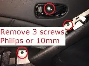 Откройте один из трех винтов, поддев обивку дверной ручки.