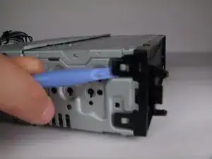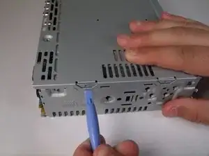 Используйте пластиковый инструмент для вскрытия, чтобы поддеть соответственно верхние и нижние защёлки.