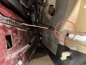 Между дверью и панелью необходимо также отсоединить ещё два провода. Теперь панель полностью отделена.