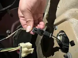 При отсоединении этих разъёмов учитывайте, что переключатель зеркал имеет защёлку, которую нужно нажать для разъединения.