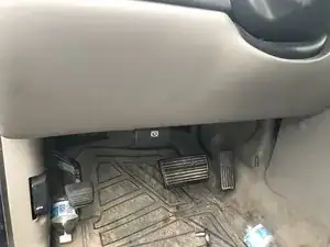 Белый пластиковый датчик, подключенный к педали тормоза, снимается после оттягивания металлического язычка на педали. Для удобства используйте съемник уплотнительных колец.