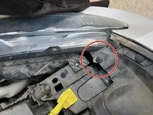 Установите фару так, чтобы передняя часть находилась под отверстием для пружинного штифта, снятого на шаге 2.