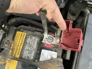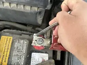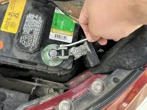 Ослабьте болт положительной клеммы гаечным ключом на 10 мм, поворачивая против часовой стрелки.