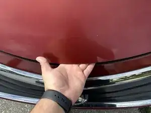 Найдите подпорку капота спереди и зафиксируйте её для безопасности.