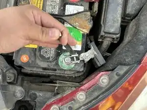 Ослабьте болт отрицательной клеммы гаечным ключом на 10 мм, поворачивая против часовой стрелки.