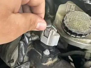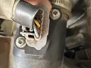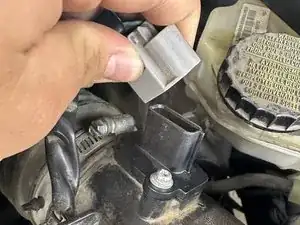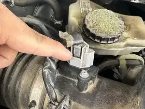 Отсоедините разъём датчика массового расхода воздуха, нажав на защёлки и потянув вверх.