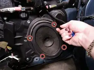 Используйте отвертку Philips #1, чтобы удалить четыре винта, которые крепят динамик двери.