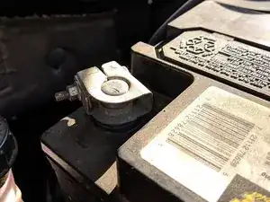 С помощью головки на 8 мм ослабьте гайку на 8 мм, которая крепит клемму аккумулятора к батарее.