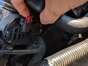 Подключите электрический разъем дроссельного узла и вставьте красную предохранительную защелку на место.