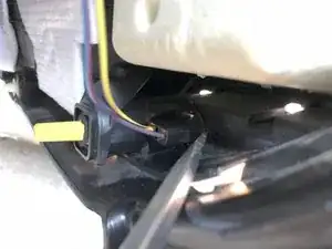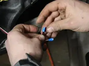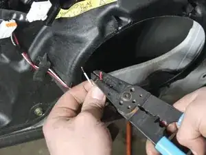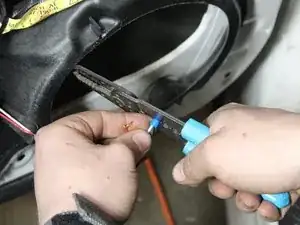 Соедините провода от двери с проводами нового динамика, убедившись в правильной полярности подключения. (Маленький провод от разъёма динамика является положительным.)