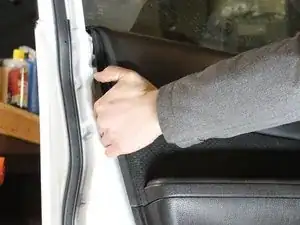Отстегните панель двери, начиная со стороны, ближайшей к петлям двери.