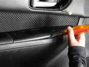 Выдавите крышку возле наружного зеркала, чтобы снять напряжение с двери.