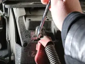 Ослабьте болт на положительной клемме ключом на 10 мм.