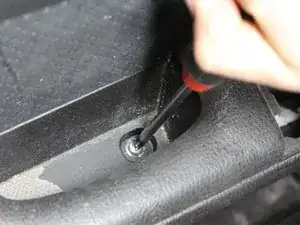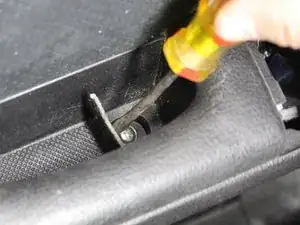 Выверните винт панели внутреннего подлокотника крестовой отверткой. Этот винт удерживает панель подлокотника.