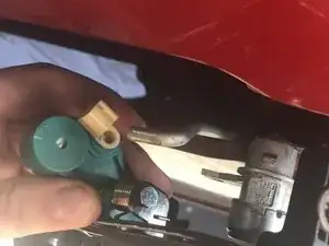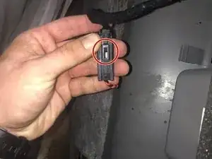 Нажмите маленькую кнопку и оттяните провод от автомобиля.