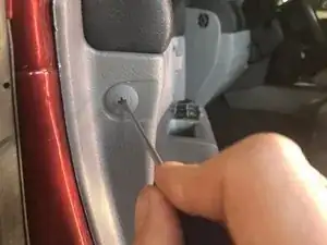 Выверните последний винт рядом с кнопками замка и управления стеклоподъёмником в небольшом отверстии.