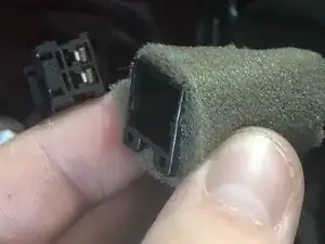 Перед тем как снять внутреннюю панель, необходимо снять динамик в дверце водителя. Для этого просто сожмите его, и он выйдет. К динамику подключён небольшой провод. Чтобы отсоединить его, нажмите кнопку на разъёме, и провод отсоединится.