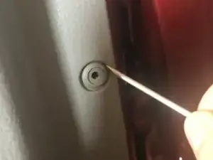 Удалите винт, крепящий дверную ручку.