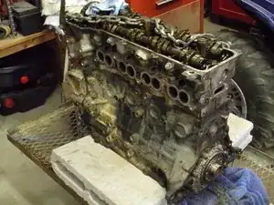 Очистите и покрасьте детали, которые будут установлены на новый блок. Установите старые и новые детали на новый блок. Новыми деталями были водяной насос, форсунки, дроссельный узел и все электрические датчики.