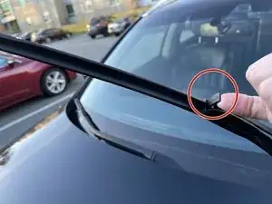 Маленькая зажим удерживает лезвие на месте. Поднимите зажим вверх к руке дворника и нажмите вверх.