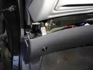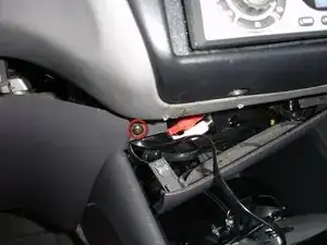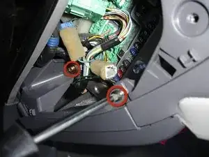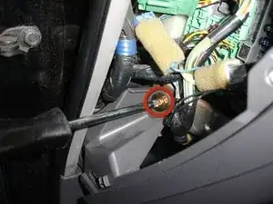 Удалите два винта Phillips, которые удерживают нижнюю панель со стороны водителя на приборной панели.