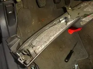 Удалите последний винт Phillips, фиксирующий правую сторону нижней панели со стороны водителя.