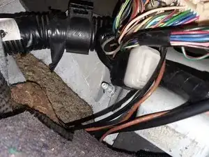 Электронный блок управления крепится болтами к области под центральной панелью как минимум тремя болтами и доступ к нему осуществляется с обеих сторон салона. Вероятно, потребуется снять подпятник сцепления, чтобы добраться до двух болтов с водительской стороны. На стороне пассажира (на фото) есть как минимум один болт, и доступ к нему проще.