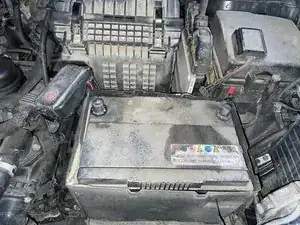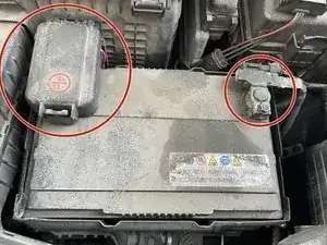 С помощью головки на 10 мм сначала снимите отрицательную (слева), а затем положительную (справа) клемму аккумулятора.