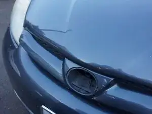 Выемка для эмблемы расположена чуть ниже капота автомобиля.
