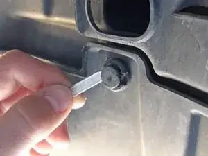 Найдите и снимите болты в передней части колесной арки с обеих сторон автомобиля с помощью крестовой отвертки №1 или торцевого ключа на 8 мм.