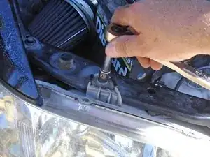 Снимите болт на 10 мм в верхней части фары с помощью торцевого или накидного ключа.