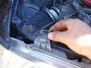 При необходимости вы можете отсоединить воздухозаборник (рядом с аккумулятором), чтобы получить больше свободного места для отсоединения разъема фары со стороны пассажира. Если вы снимаете воздухозаборник, обязательно заглушите обе его стороны чистой, не ворсистой тканью, чтобы внутрь ничего не попало во время работы.