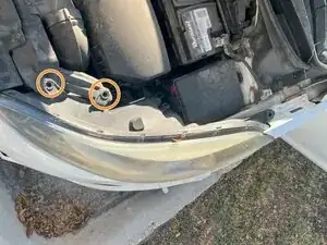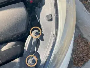 Используйте крестовую отвертку #2, чтобы вывернуть два винта длиной 15,0 мм, крепящих корпус фары.