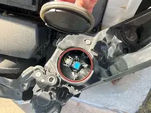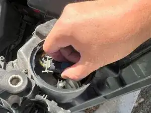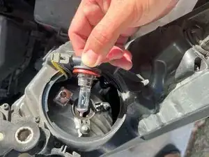 Вставьте новую лампу в разъём, убедившись в надёжной фиксации, прежде чем возвращать её в корпус фары.