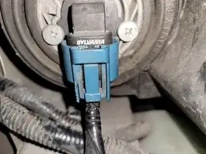 Снимите разъем фары, нажав на защелку и потянув его от автомобиля.