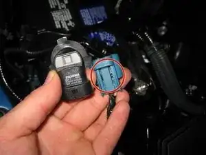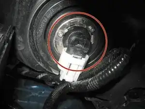 Нажмите вниз на защёлку, чтобы отсоединить лампочку от разъёма.