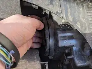 Найдите крышку лампочки, которая находится под капотом и непосредственно за фарой.