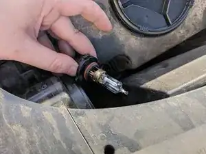 Удалите старую лампочку, поворачивая её против часовой стрелки до полного отсоединения, осторожно, чтобы не уронить лампочку в моторный отсек автомобиля.