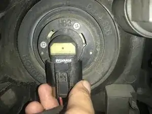 Поверните лампочку против часовой стрелки с помощью руки и аккуратно вытяните фару.
