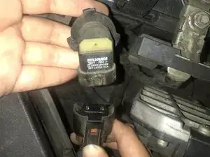 Фара подключена к разъему с зажимом. Нажмите на зажим и одновременно другой рукой потяните лампочку.