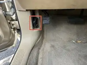 Рычаг находится под приборной панелью, рядом с педалью стояночного тормоза.