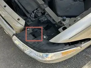 Во время шага 5 корпуса фары может выпасть из передней части автомобиля. Это повредит проводку фары, возможно перережет питающие кабели. Чтобы этого избежать, держите корпус при выполнении ремонта. Может понадобиться помощник.