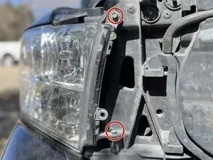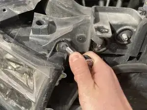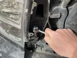 Отверните два болта с внутренней стороны фары подходящим ключом с накидной головкой.