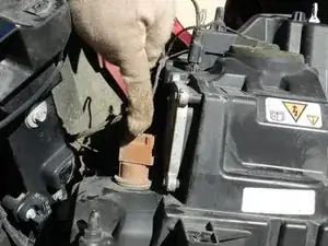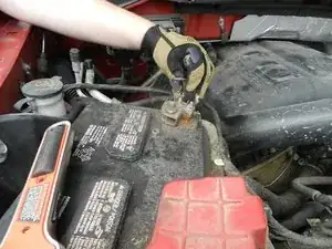 С помощью разводного ключа отсоедините отрицательный провод аккумулятора (поверните против часовой стрелки, затем снимите).