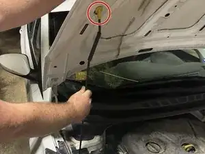 Поднимите капот автомобиля и установите упор капота в предназначенное для него место.