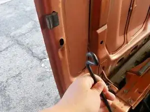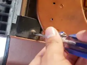 Удалите левый винт горизонтальной регулировки, вставив отвёртку через отверстие.