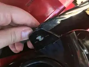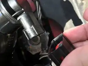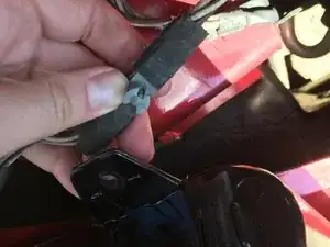Нажмите на серую вставку, которая удерживает провода рядом с фарой.