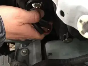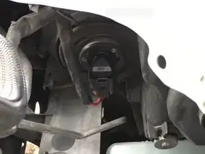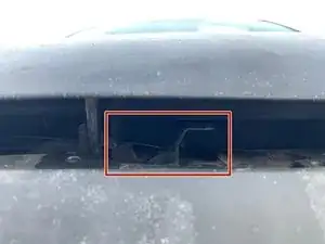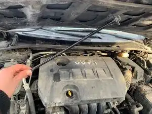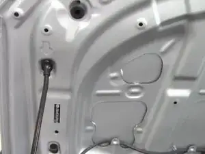 Найдите чёрную подпорку и вставьте её в отверстие подкапотной части.
