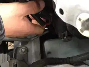 Отведите фиксатор влево, чтобы полностью разблокировать капот.