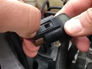 Нажмите крючок вниз, чтобы отсоединить лампу от проводки.